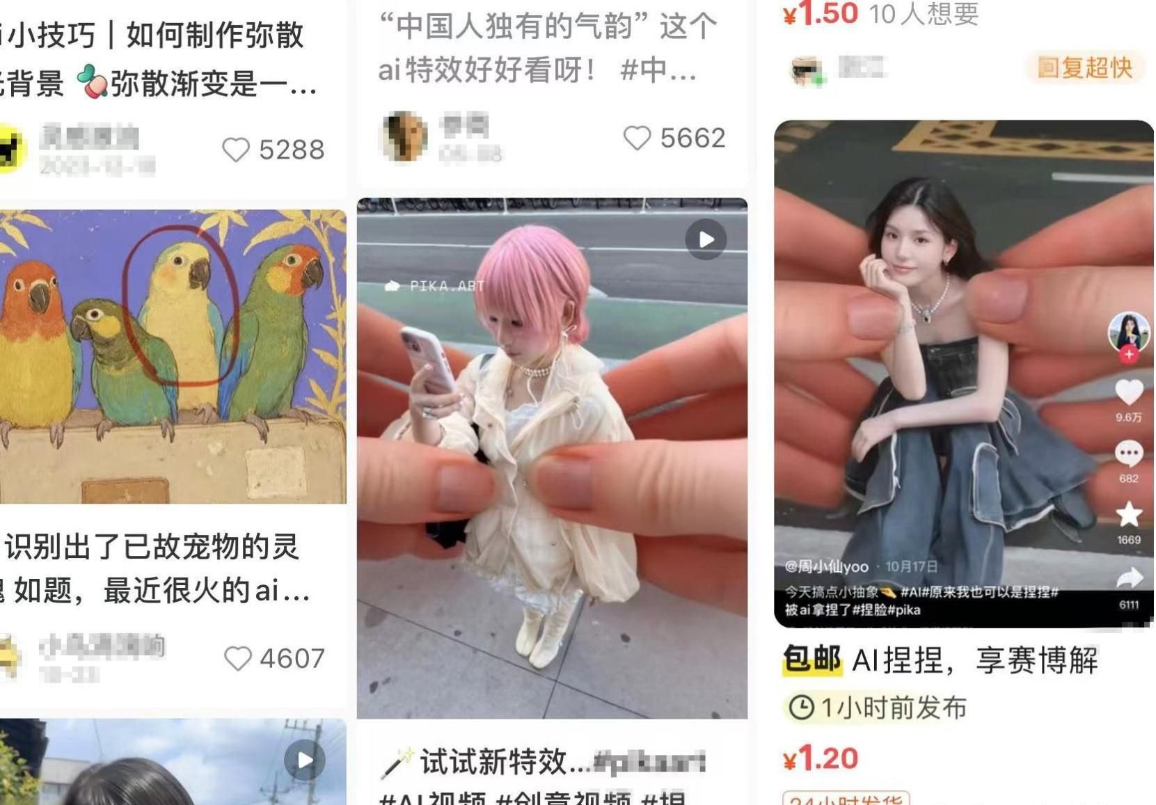 二手交易平台本身更偏向真实的用户展示,天然就成了各类手工、定制服务的接单渠道,过去一年里,平台上带AI关键词的定制交易也已经成倍增长。