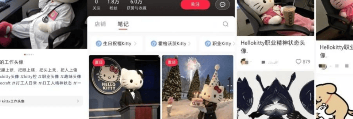 打开小红书搜相关关键词,搜索结果几乎全是各种“疯感Kitty”的内容,软萌的Kitty形象配上“发疯”的动作和表情,这种强烈的反差感简直精准拿捏年轻人的喜好,自然也吸引了大量流量,几乎刷几条就能刷到相关笔记。