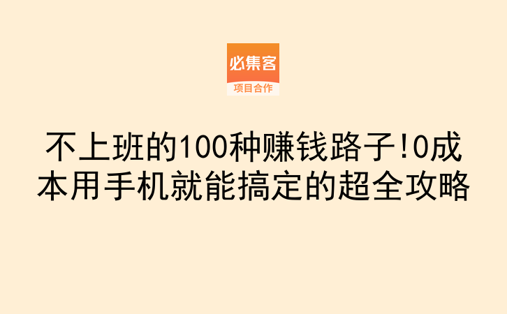 不上班的100种赚钱路子!0成本用手机就能搞定的超全攻略