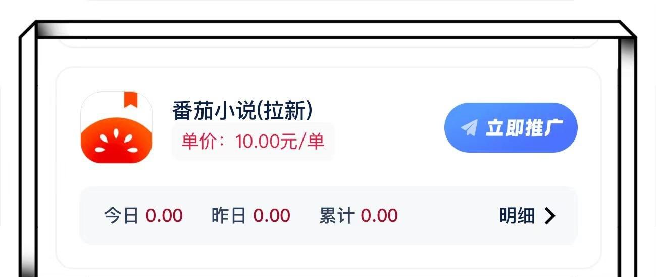 在APP拉新领域,番茄小说同样采用小说推文的推广模式,且在整个小说推文体系中,番茄小说堪称表现突出的代表,成功推广一位用户,佣金约为10元。