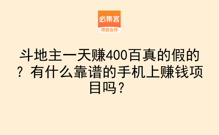 斗地主一天赚400百真的假的?有什么靠谱的手机上赚钱项目吗?