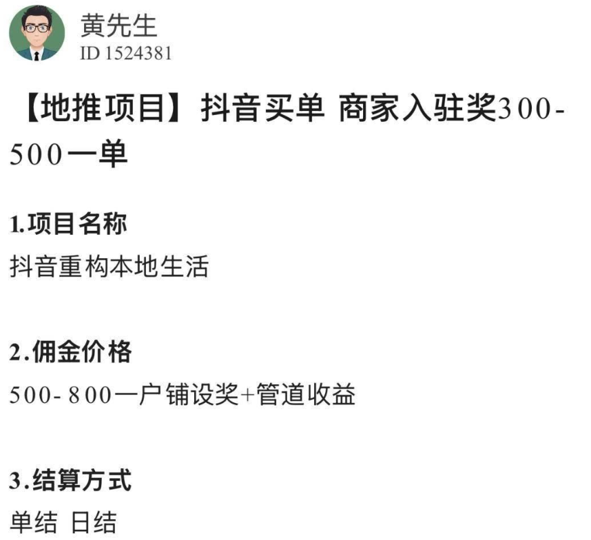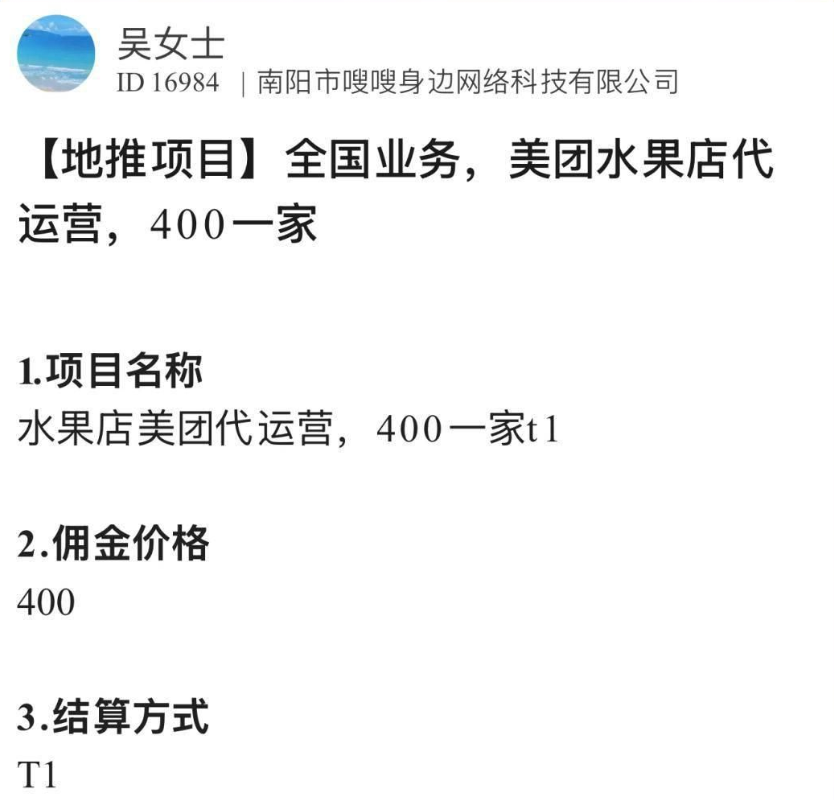 ③项目优势:佣金单价高,整体收益可观;商家可免费入驻,接受度高;单个商家对应专属服务群,基本能当天完成认领,数据反馈速度快。