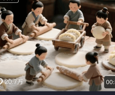 最近,抖音上一种“小人国做菜”的视频格外火爆,大家最近有刷到过吗?视频里总有一群身形迷你的小人,身着古装,在微缩的古风厨房里有条不紊地忙碌着,烹制各种美食。食材在他们眼中如同庞然大物,比如青椒需要几人合力搬运,包饺子时,小人的身形甚至比饺子大不了多少——这样的画面既可爱又充满视觉反差,让人觉得格外有趣。我就曾刷到一条小人国做可乐鸡翅的视频,点赞量已有20多万,评论区里大家纷纷表示被这些可爱的小人萌化了。