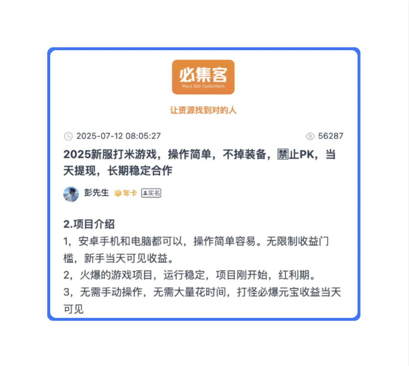 我们可以借助必集客平台——国内领先的游戏搬砖工作室招商平台,从上面的招商信息和工作室动态中“窥一斑而知全豹”,判断出哪些游戏是真正值得投入的。