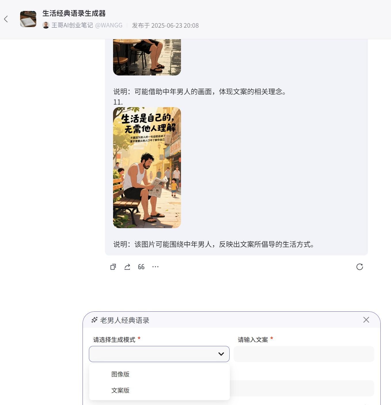 包含两种模式:图像版、文案版;