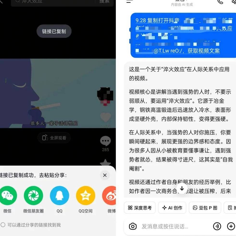如果让我来操盘这个赛道,我会这么规划操作路径:先在抖音平台上筛选出心理学领域的爆款视频,然后借助AI工具(比如豆包),精准提炼出视频里的核心观点与用户感兴趣的内容要点。