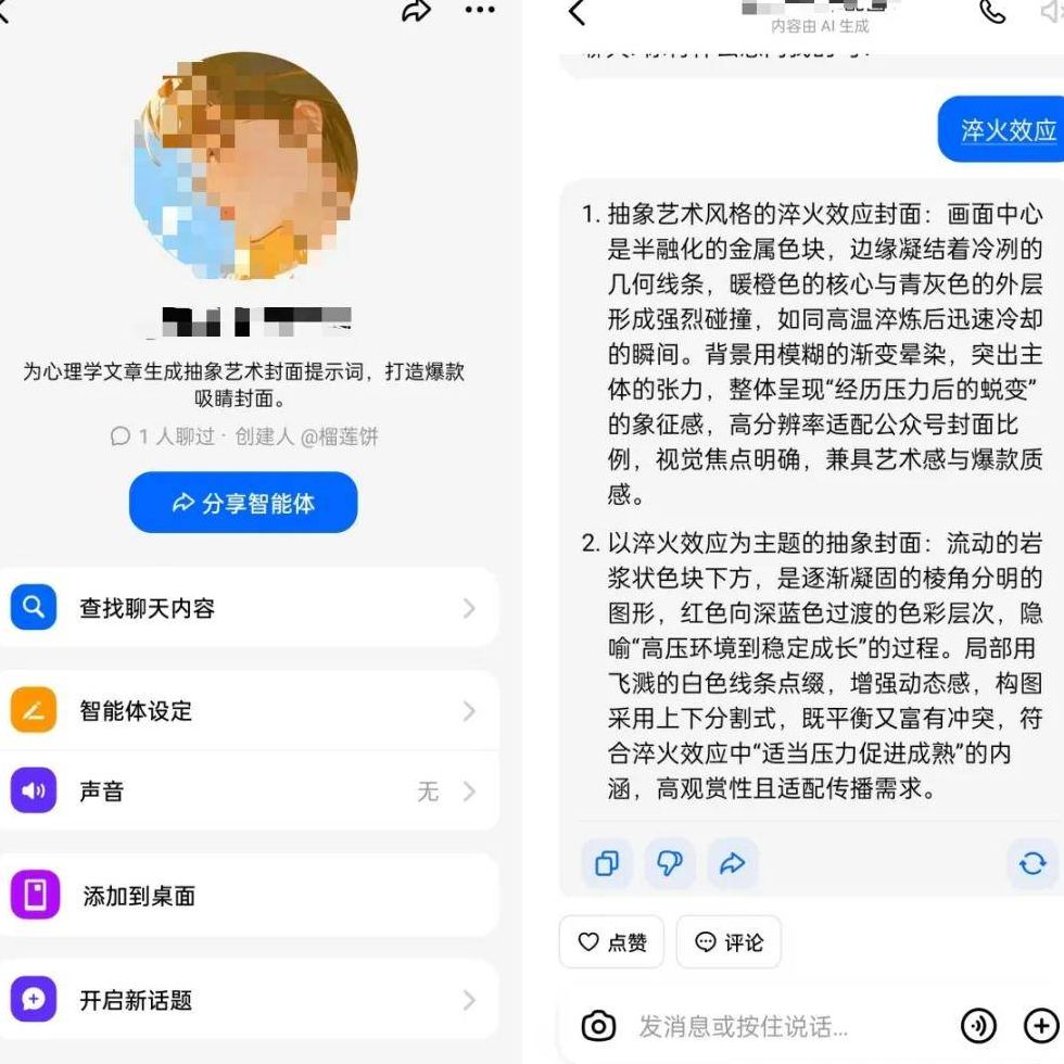 之前我也常常为配图的事头疼,直到后来发现了智能体工具这个好帮手。只需要输入内容主题,它就能自动生成精准的生图提示词,再用豆包就能生成适配的图片。工具的最大价值,就是帮我们省去这些耗时费力的中间环节,提升创作效率。