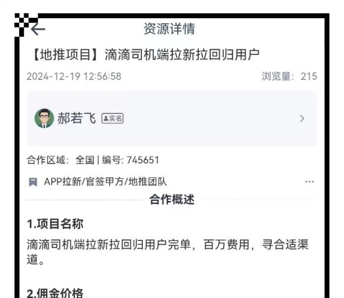 滴滴出行的拉新项目分为两部分:乘客端拉新(42元/单)与司机端拉新(300-500元/单)。