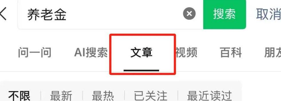 第二步,获取内容“原材料”。最快捷的方法是直接在公众号平台搜索“养老金”,筛选阅读量高的文章作为对标范本。重点用微信搜一搜功能,分析爆款文章的创作逻辑。