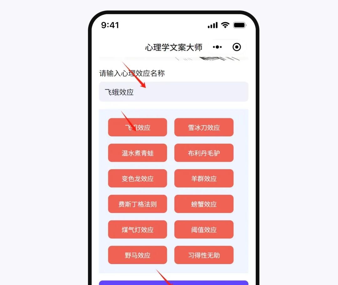 你可以直接选择预设的【心理学效应名称】,也可以手动输入你想要制作的【心理学效应名称】;