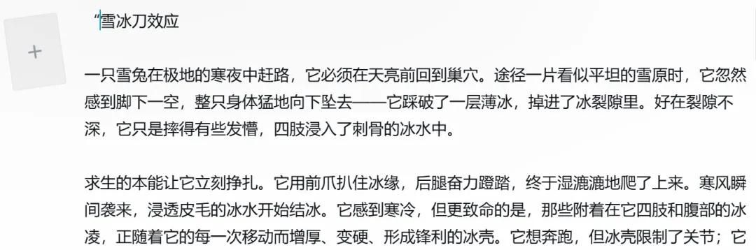 在对话框内输入刚刚智能体生成好的【文案:雪冰刀效应】+【提示词】。