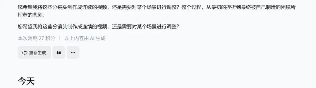 按照页面提示,发送生成连续视频的指令,即梦就会自动生成完整视频。