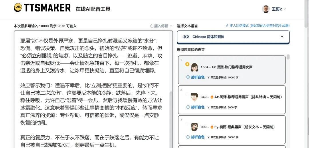 如果字数超限也可以用其他配音软件,我自己常用的是马克配音(公众号私信搜“马克配音”),这款工具完全免费。