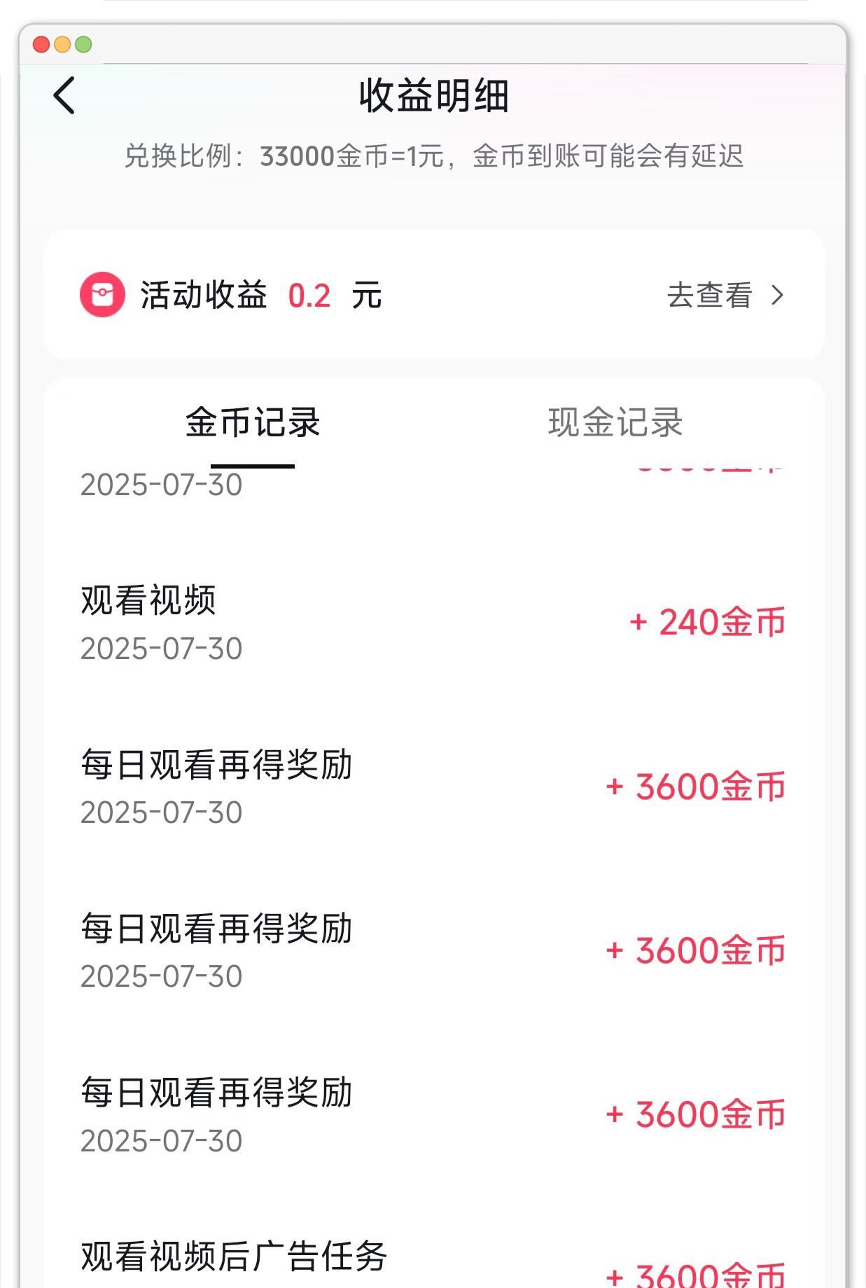 不过需要注意的是,西瓜视频的兑换规则是33000金币兑换1元,所以整体收益不会太高,一天能有5-10元就已经很不错了,更适合和其他看广告赚收益的平台搭配起来操作。