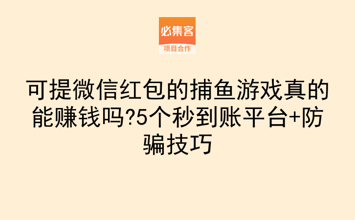 其实除了捕鱼游戏,网络上还有很多正规的副业机会,关键是要找到靠谱的信息渠道。必集客是项目资源对接平台,提供副业项目和合作资源,适合找合作、拓业务的朋友。上面有不少经过筛选的游戏推广、任务平台等资源,新手可以在里面慢慢摸索,找到适合自己的赚钱方式。赶紧收藏这篇攻略,现在就去试试吧!