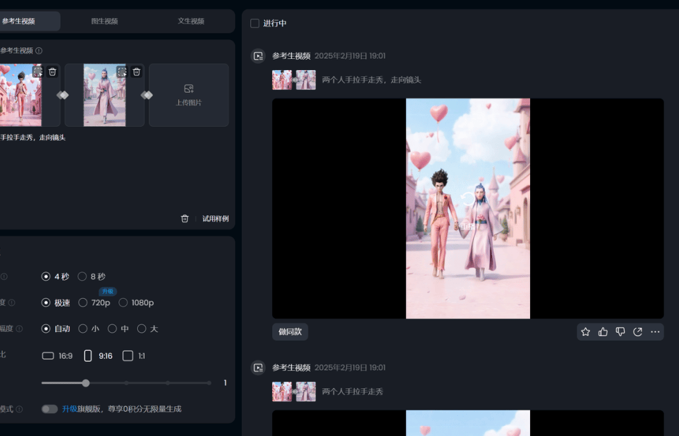 这里使用的是Vidu的多图参考功能。