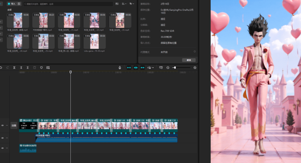 最后打开剪映,将生成的7段视频导入。