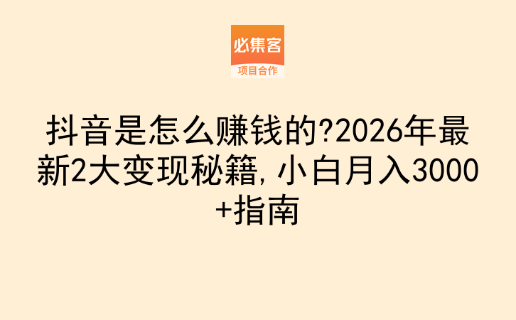 抖音是怎么赚钱的?2026年最新2大变现秘籍,小白月入3000+指南