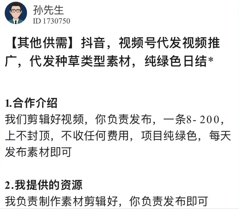 因为你没法把控视频的内容源头。所以接单前,一定要自己先仔细看一遍视频内容,确保内容健康合规,避免因为发布违规内容连累到自己的账号。