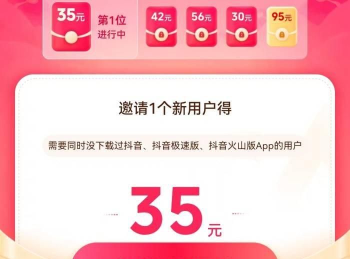 这类活动的邀请奖励往往很丰厚,每成功邀请一单就能拿到30-60元。不过找到符合活动要求的新用户有一定难度,比如抖音极速版的邀请活动,对新用户的定义是必须同时是抖音、抖音极速版、抖音火山版的新用户。