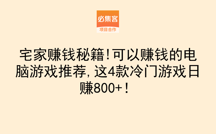 宅家可以赚钱的电脑游戏推荐,这4款冷门游戏日赚800+!