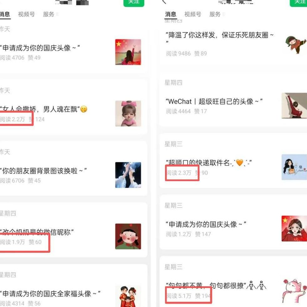 分析这些账号可以发现,核心指标是阅读量,普遍达到几千以上,数据表现良好。我们来拆解其内容公式:非常简单,即“15条短文案 + 1张配图”。