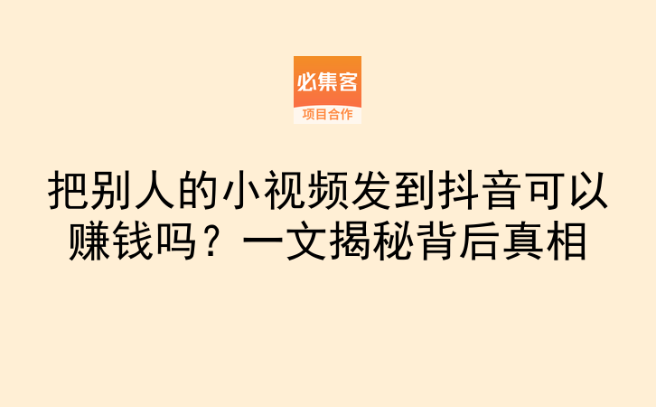 把别人的小视频发到抖音可以赚钱吗?一文揭秘背后真相