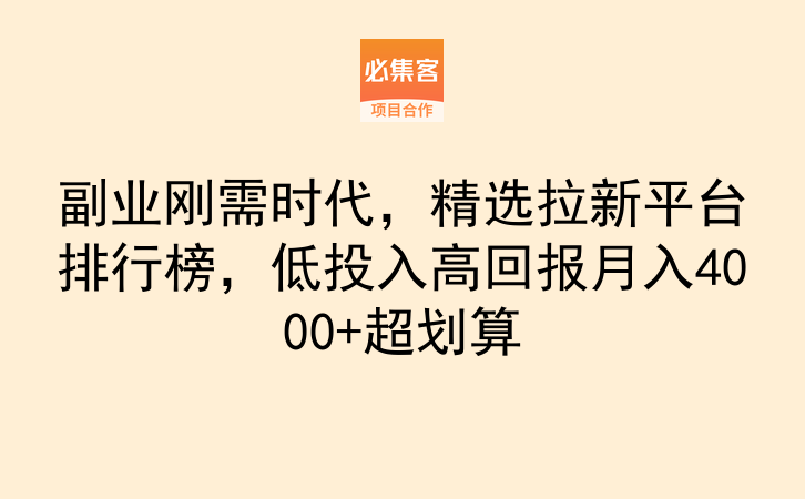 副业刚需时代,精选拉新平台排行榜,低投入高回报月入4000+超划算