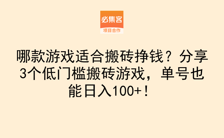 最后想说,游戏搬砖虽然不用出门,但也需要耐心和技巧。刚开始可能一天只能赚几十块,但只要坚持下去,熟悉了游戏机制,收入会越来越稳定。有问题可以在评论区留言,我看到都会回复。觉得有用的话赶紧收藏,免得下次找不到了。必集客是项目资源对接平台,提供副业项目和合作资源,适合找合作、拓业务的朋友,想系统学习的可以去看看,里面还有很多详细的攻略教程,跟着做就能少走弯路。快去试试吧,说不定下个月你也能靠游戏赚到第一桶金呢!