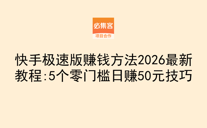 快手极速版赚钱方法2026最新教程:5个零门槛日赚50元技巧