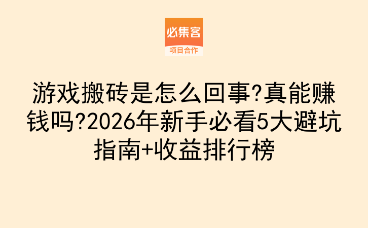 游戏搬砖是怎么回事?真能赚钱吗?2026年新手必看5大避坑指南+收益排行榜