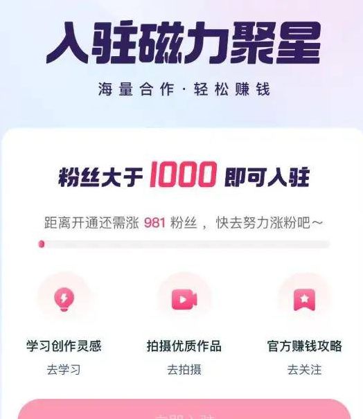 快手磁力巨星本质与抖音巨量星图类似,其短剧推广佣金授权入口为“磁力聚星”,同样设有门槛——需账号粉丝量达到1000方可开通。