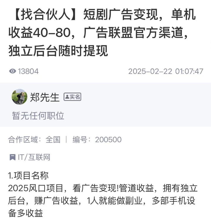 当然这里有一个必须注意的风险提示:那就是你一定要熟知刷视频看广告的基础规则,千万别贪心、别投机取巧,以免被广告联盟拉黑。