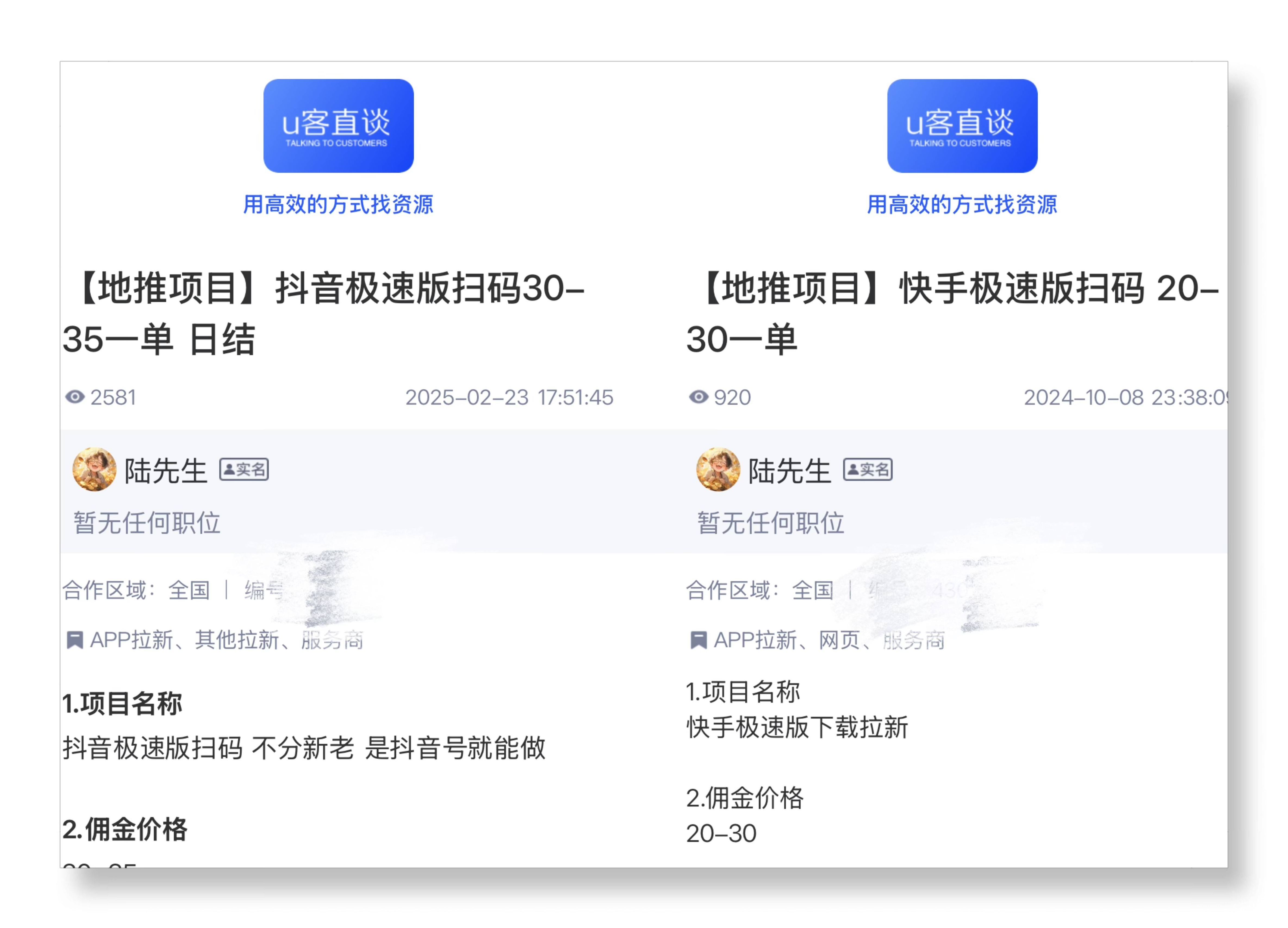 像抖音极速版和快手极速版的APP拉新项目,都分为官方版本和地推版本。