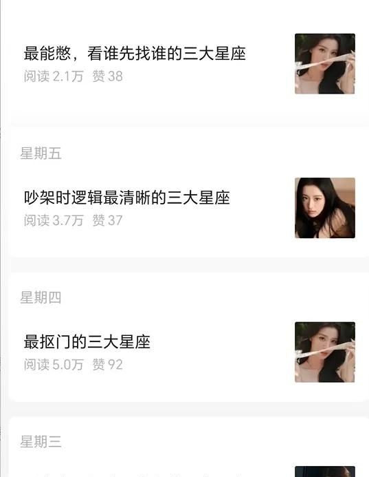 - 应用:这类文章常会突出星座“高智商”、“深情”、“内心强大”等优点,刚好满足了读者的自尊心和自我期待,让人乐于接受还主动分享。