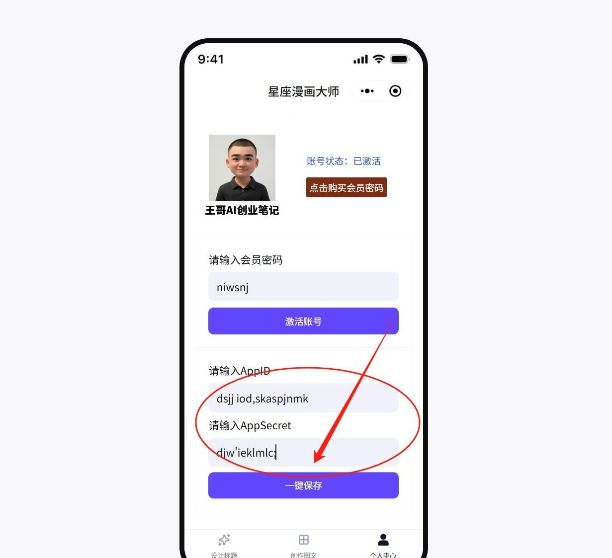 依次输入之前保存好的两个公众号参数,点击一键保存即可。