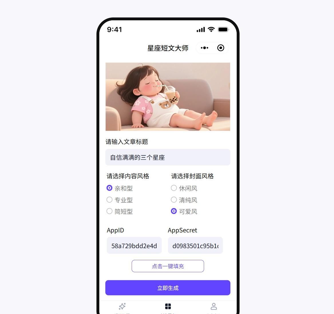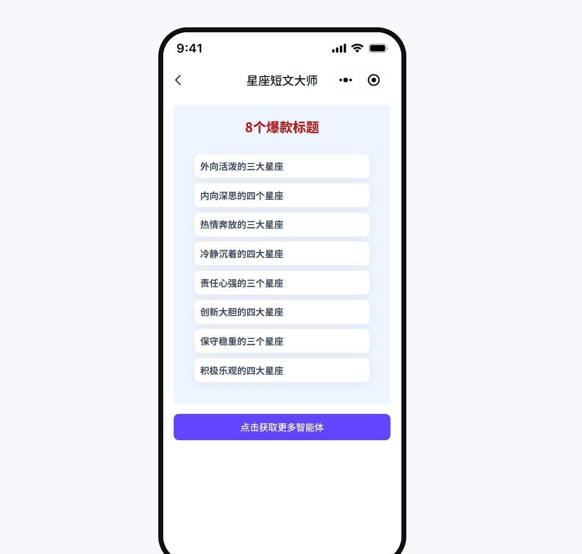 不同智能体的操作逻辑都大同小异,这里我以星座短文大师举例演示。