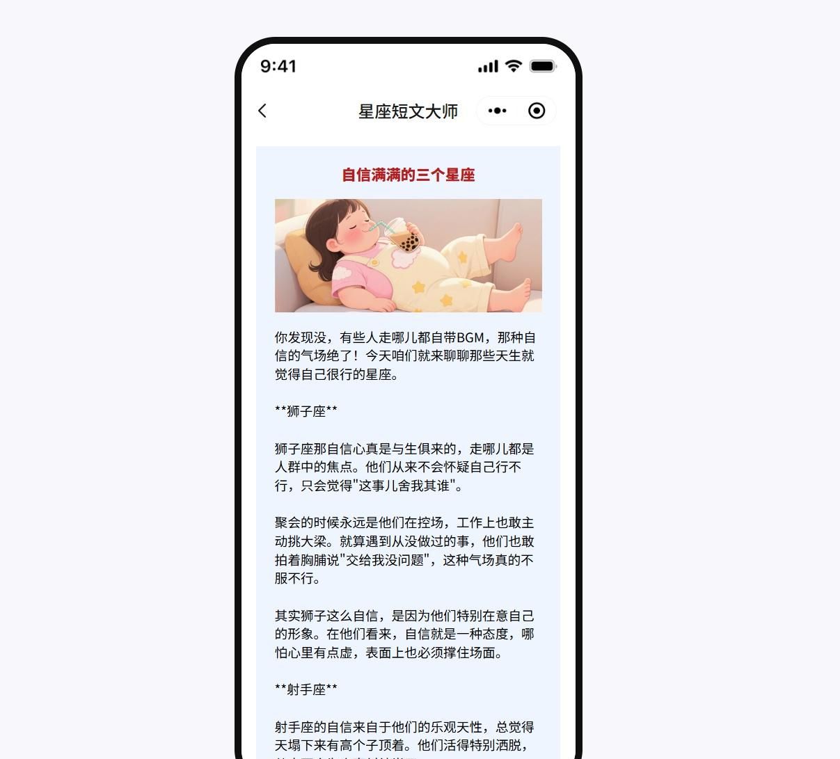 - 应用:星座短文中描述的性格特质(如“外表坚强,内心柔软”、“追求完美”等)都有高度普适性,绝大多数人都能从中对号入座找到自己的影子,自然会生出“太准了!”的感受。