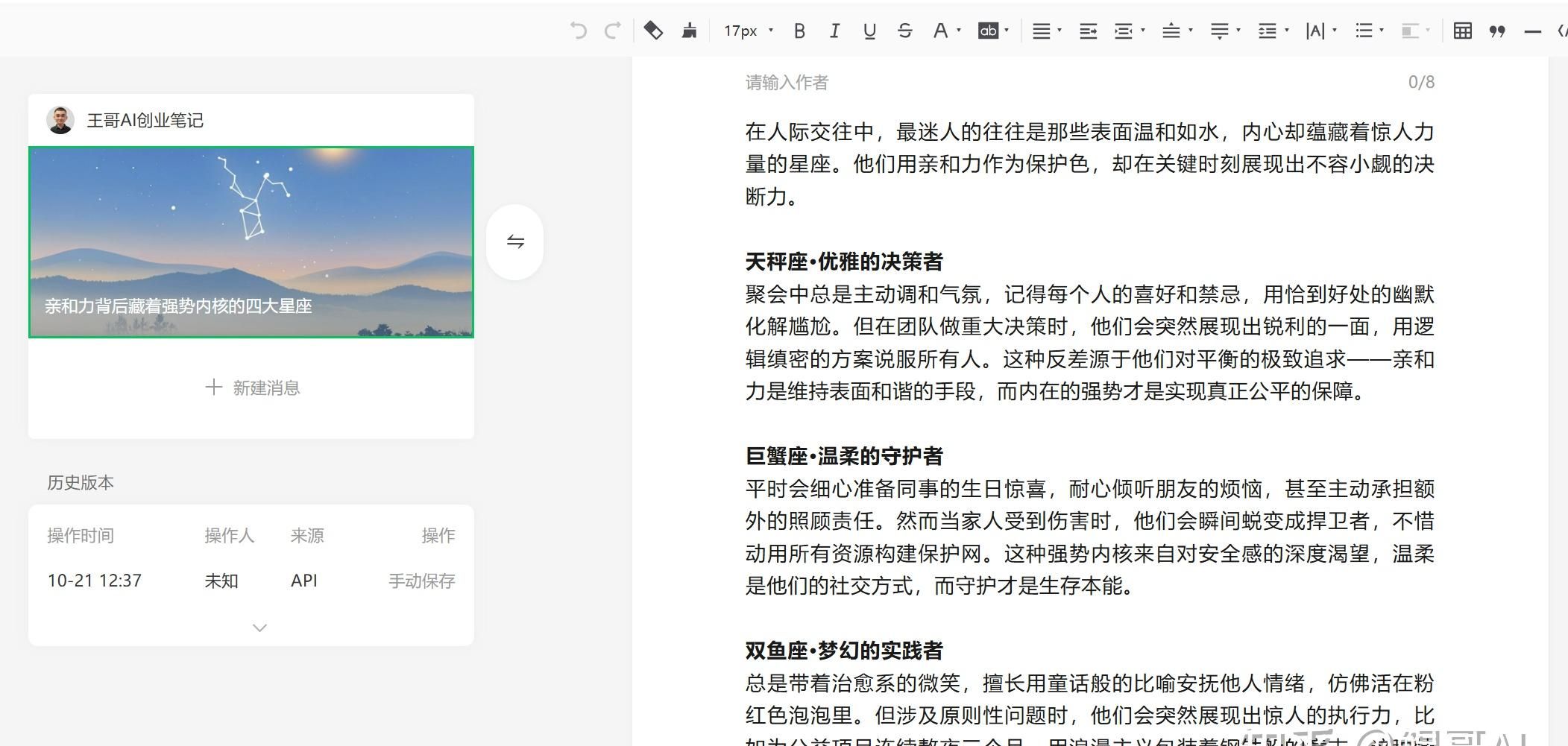 下图是打开文章后的界面,智能体已经自动完成排版了。