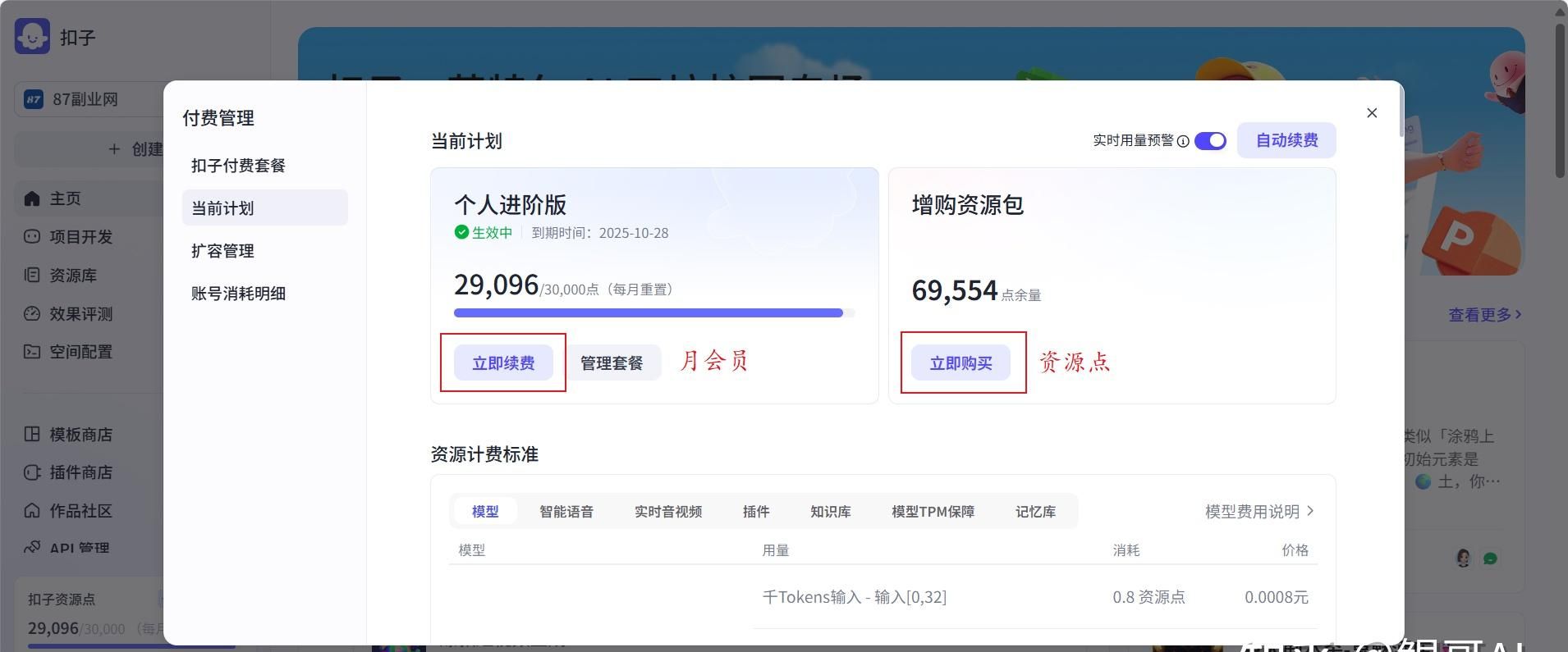 推荐开通9.9元月会员,附赠1万资源点,后续再根据使用需求增购资源点就可以。