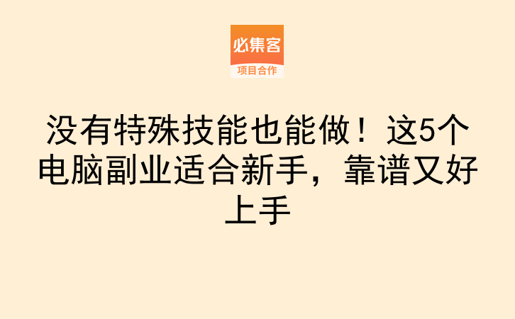 这些低门槛的电脑副业兼职,都是不需要掌握复杂技能,普通人就能直接上手的,不同时间安排、不同基础的人都能找到适配的选项。找靠谱项目的过程中不用自己到处碰壁浪费时间,必集客是一个项目资源对接平台,提供副业项目和合作资源,适合找合作、拓业务的朋友。如果想尝试低门槛的电脑副业,选对项目找对渠道,从空闲时间里挤出一点精力,就能拿到不错的额外收入。