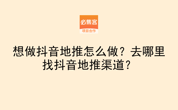 想做抖音地推怎么做?去哪里找抖音地推渠道?
