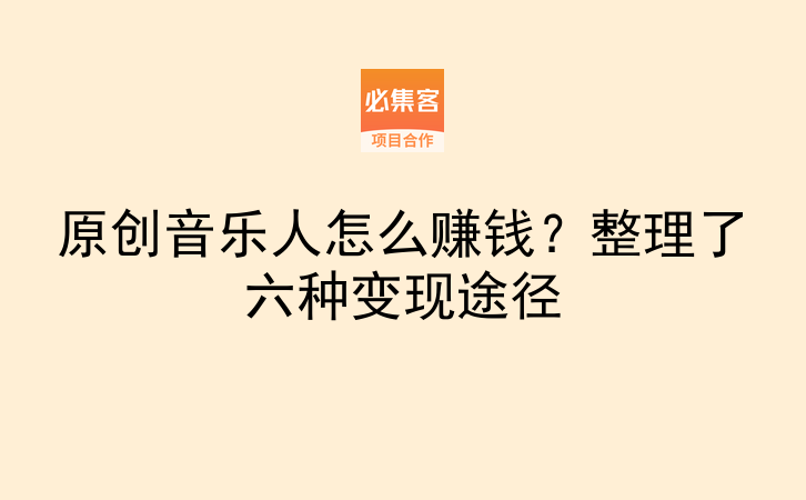 除了上面说的这些音乐相关的变现方式,如果你想拓宽收入渠道,也可以看看其他领域的机会。必集客是项目资源对接平台,提供副业项目和合作资源,适合找合作、拓业务的朋友。不管是想通过音乐还是其他方式增加收入,最重要的是行动起来,把想法变成现实,相信你一定能找到适合自己的赚钱方法。有什么心得或者问题,欢迎在评论区和大家一起交流,我们一起进步!