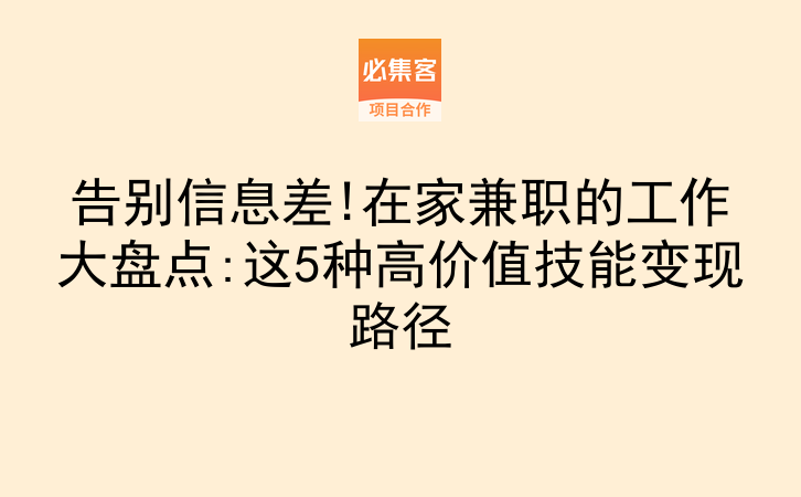 告别信息差!在家兼职的工作大盘点:这5种高价值技能变现路径