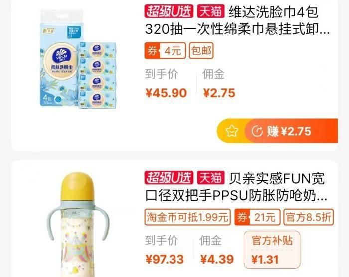 我用的是淘宝联盟和京粉,相当于一个推广员。看淘宝上有什么需求比较大的商品,比如解压捏捏乐、鼠标护腕、洗脸巾、餐巾纸等等,去淘宝联盟生成带佣金的链接,再通过朋友圈、微信群、小红书等社交渠道分享出去。
