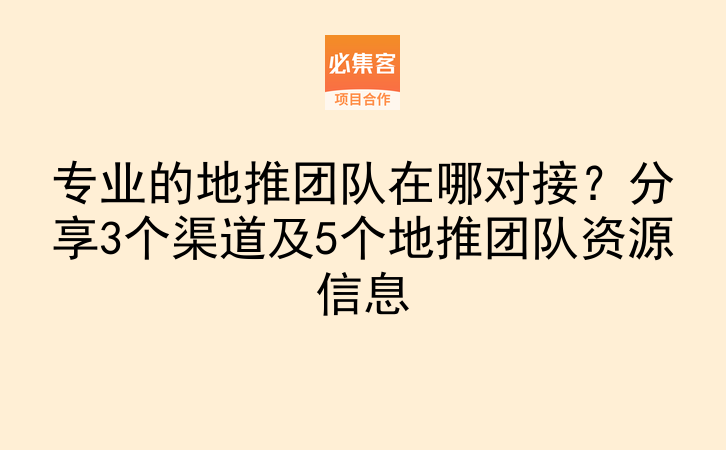 先聊聊地推团队对接渠道,这可是找团队的第一步,选对了渠道能少走不少弯路。