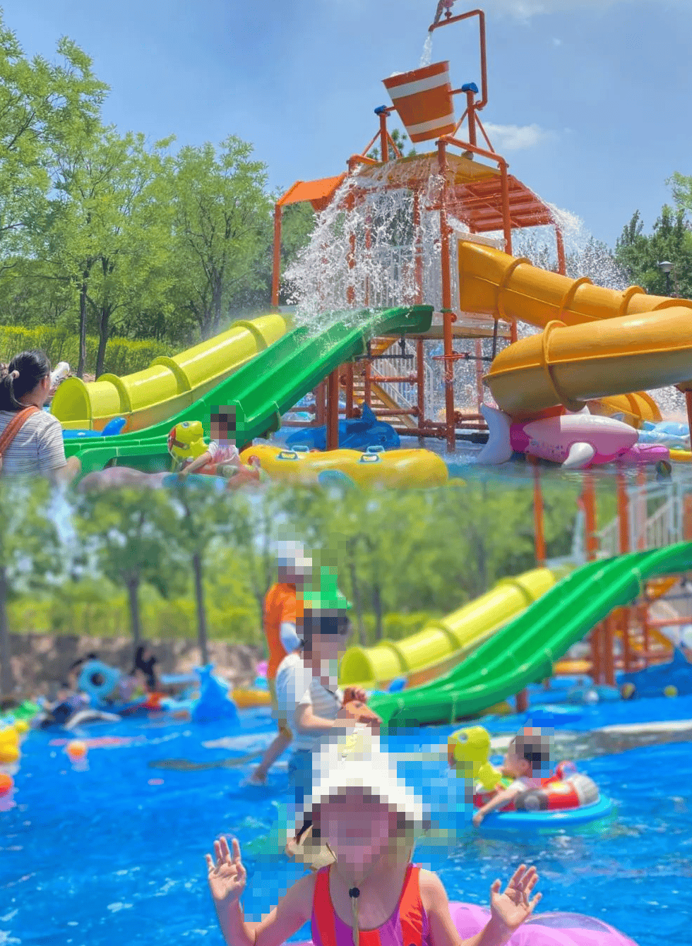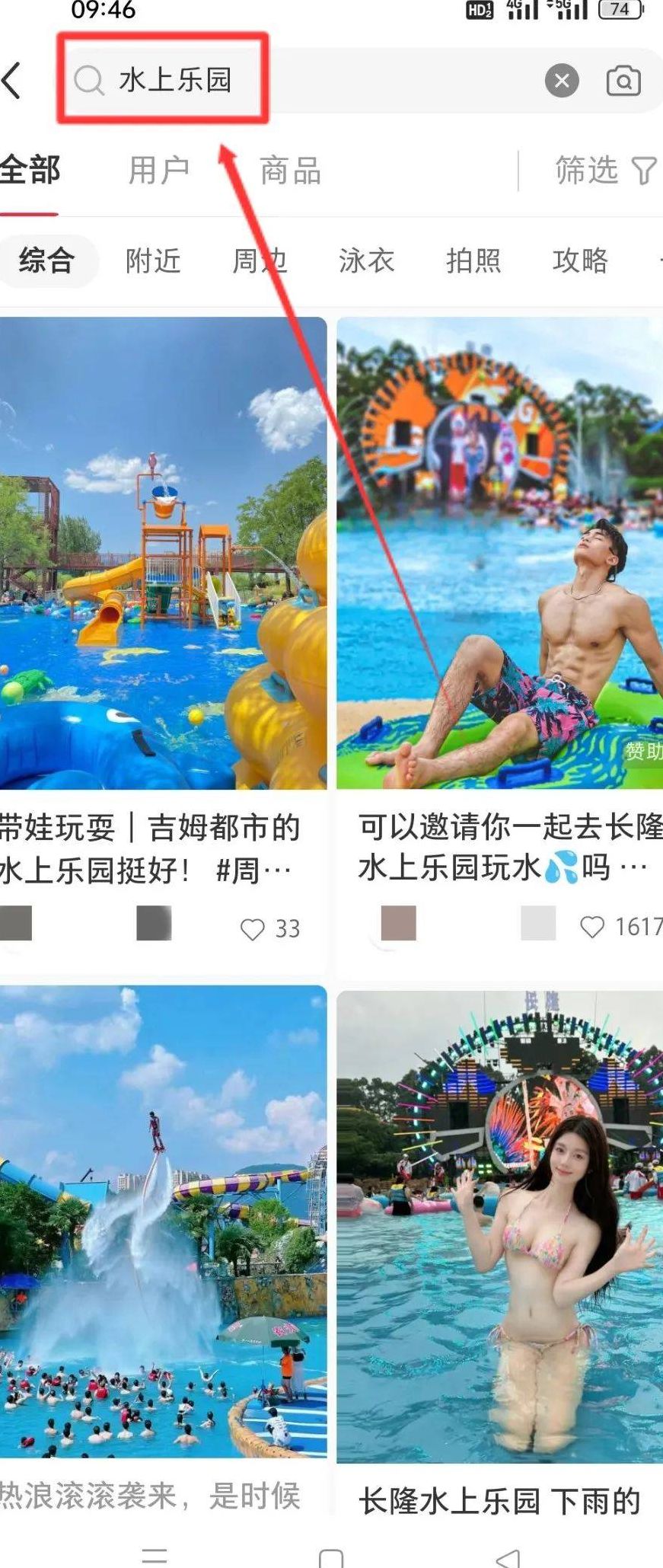 作品制作的门槛极低,就拿水上乐园品类来说,去小红书搜索“水上乐园”,能找到海量的优质素材。