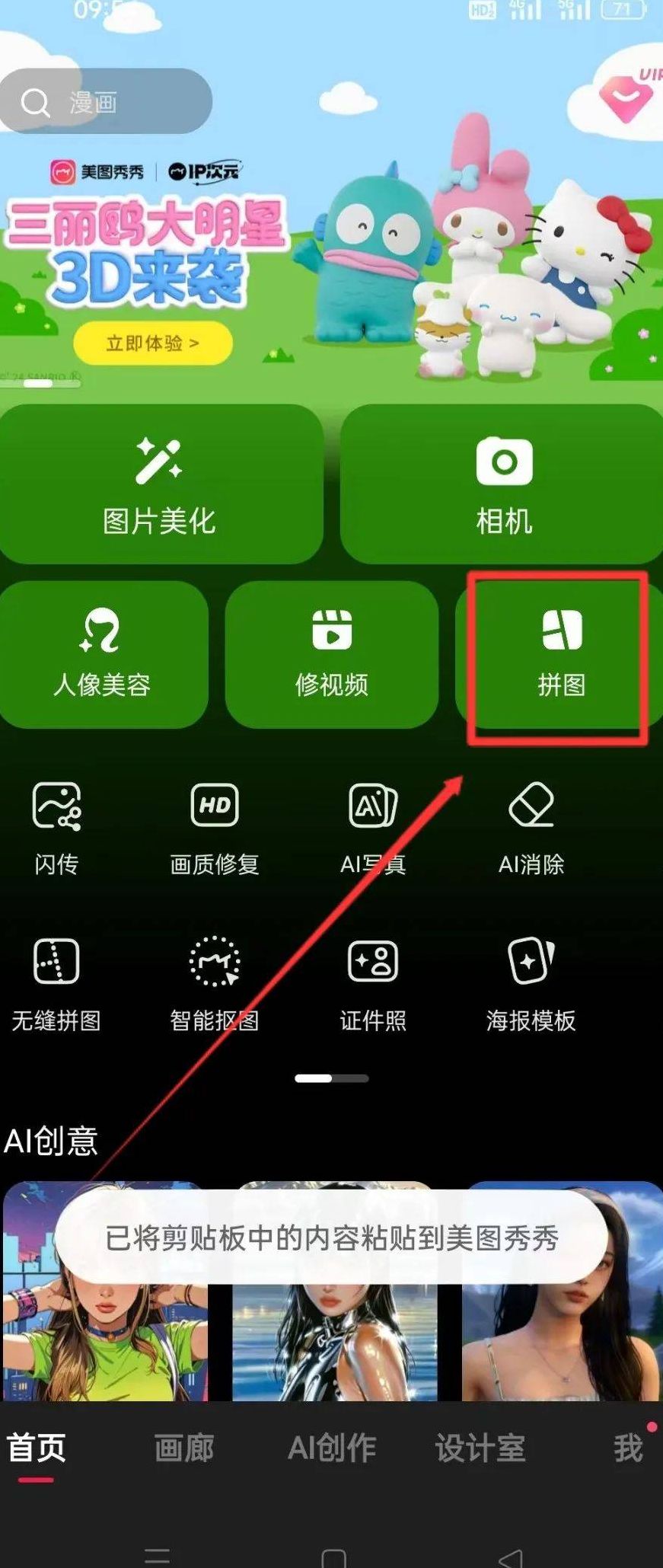 挑选6-8张合适的图片,截图保存到手机后,用美图秀秀的拼图功能,把它们合成新的图片;