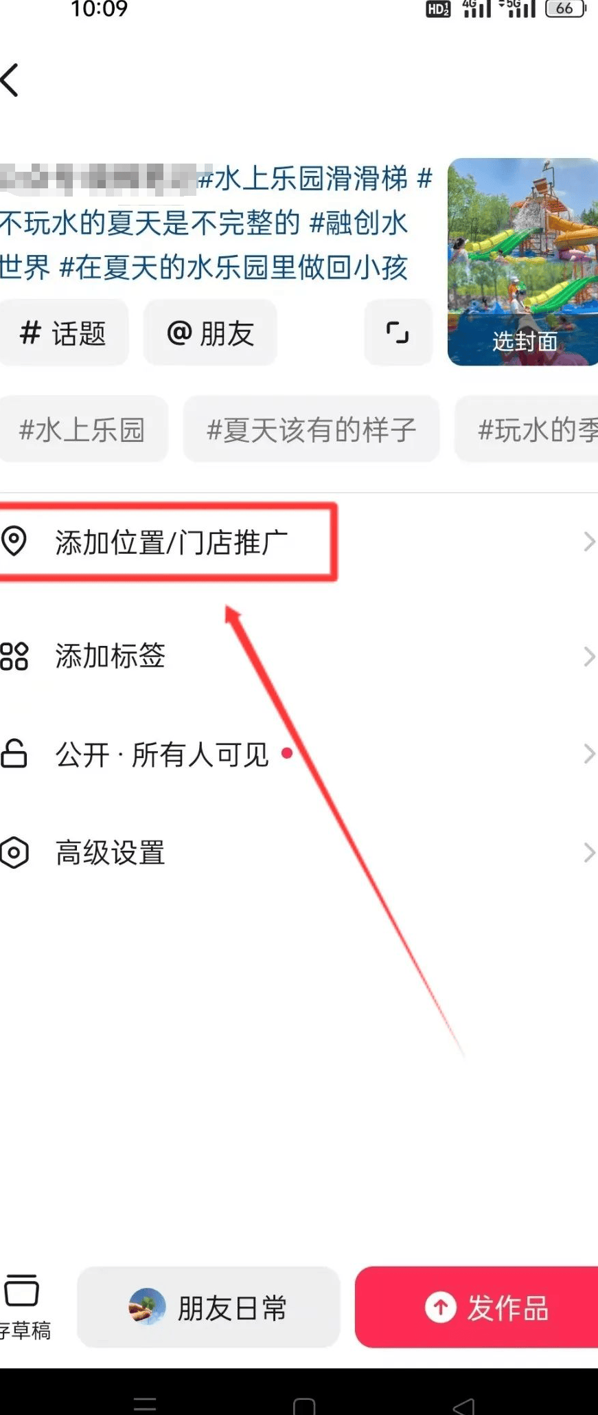 打开抖音,点击底部的“+”号,把刚做好的3张成品图导入,在发布页面选择“门店推广”就可以了;