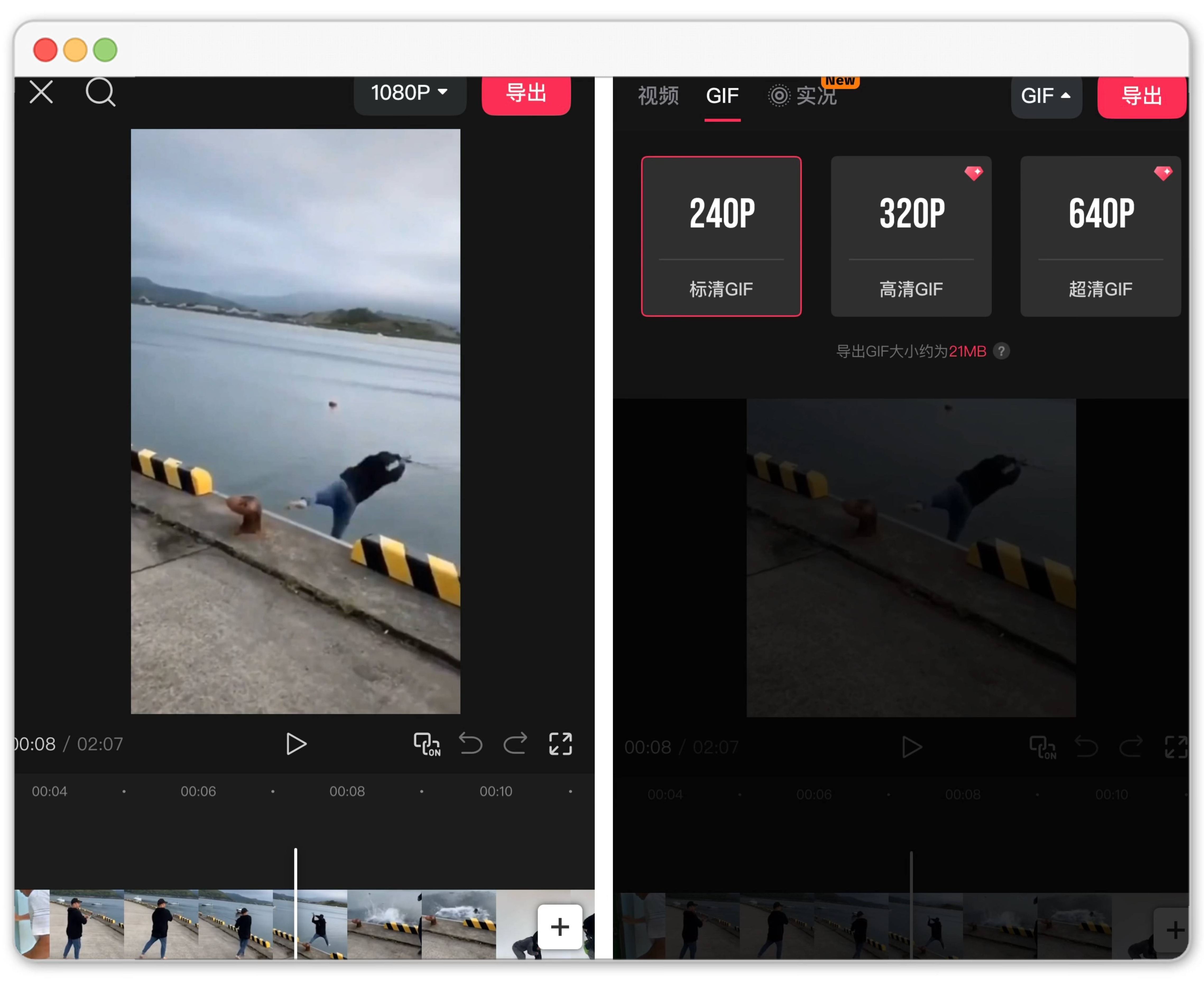 3️⃣ 导出时选择「GIF格式」,通过缩放画面就能覆盖原视频水印。